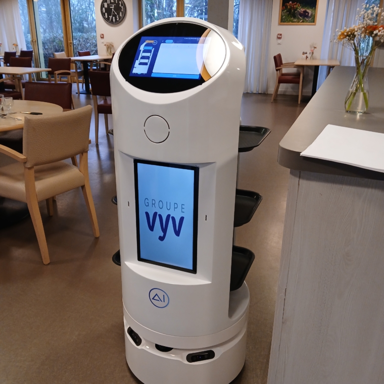 Après l’expérimentation de 3 robots connectés en Ehpad, VYV³ Pays de la Loire lance une nouvelle étude avec l’arrivée d’un robot de service au sein de la résidence mixte Beaulieu. Découvrez ce nouveau compagnon de service prêté pour 6 mois par l’entreprise AI-Robotics.